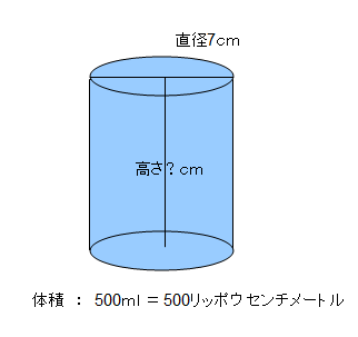 円の直径が7センチだった場合の高さを求めなさい。